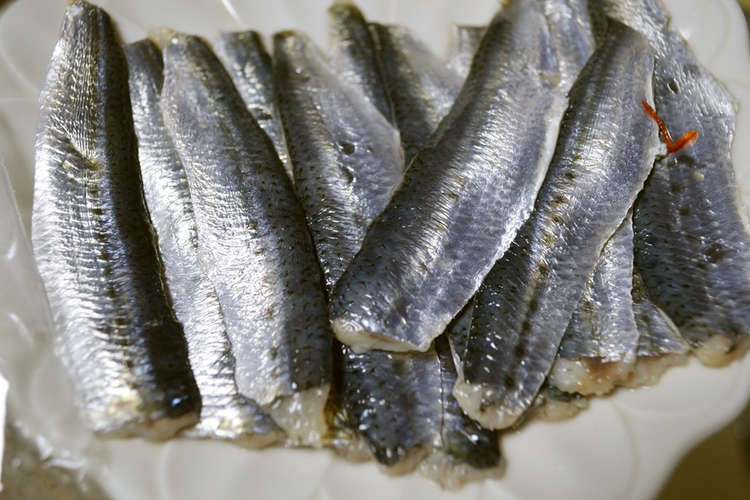 ビニール袋に片栗粉を入れてシャカシャカふると簡単に衣がつくのでおすすめ。 鍋に油を加えて160℃に熱したら、ままかりを6分揚げる。 さらに180℃まで温度を上げていき、2分揚げる。 揚げたら油を切って、トマト、レモン、パセリを添えたら完成だ。 マヨネーズとバジルペーストで作ったソースでいただこう。 取り除いた小骨を揚げても美味しい。 カルシウムも一緒にとれるの材料 ママカリのうろこや頭と内蔵を取り下ごしらえする。 ①に塩をたっぷり(3つかみ程度)振って約2時間おく。 ②に酢をひたひたに入れて1昼夜置いておく。 浸していた酢でママカリについている塩を洗い流しながら捨て、もう一度ひたひたに酢を入れ、2時間おく。 更に④の酢を捨てて、砂糖(90g)を入れ、さらに酢(180cc)を加えてならし、お好みに合わせて3時間から1日つけておけ